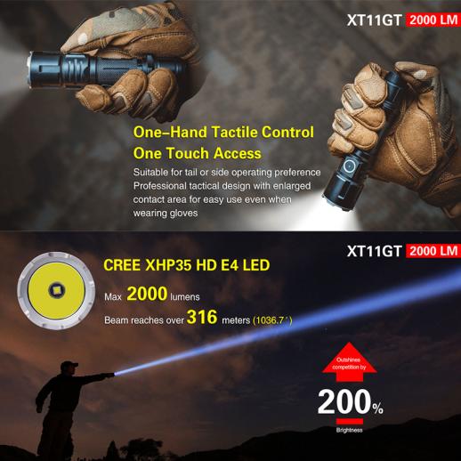 Klarus XT11GT Cree XPH35 HD E4 2000 Lumen LED lommelygte