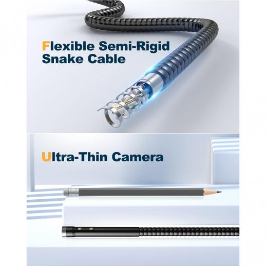 Compared to other probes, our flexible wire is very sturdy and it holds its shape like a fish tape. And 5.5mm tiny camera probe make it easily access a wide variety of confined place or somewhere cannot be reached by the naked eye.