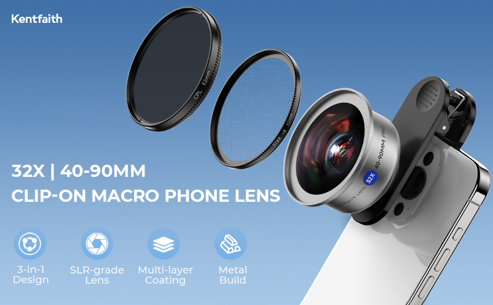 KentFaith 40-90mm 32X makro telefon objektiv