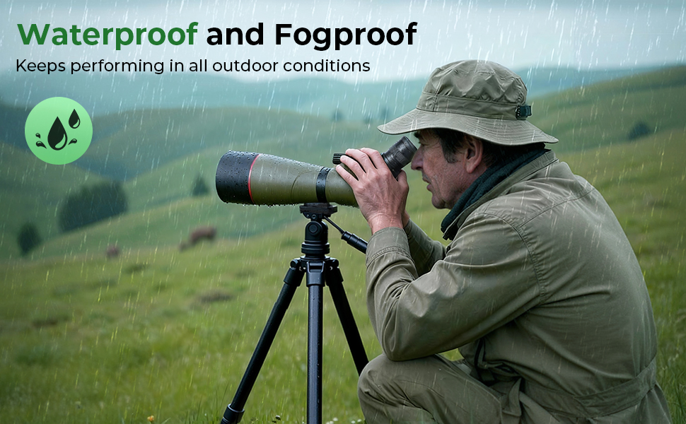Bygget til at håndtere regn, tåge og fugtige udendørs forhold, lader Kentfaith-teleskopet dig observere fugle med tillid i alle vejrforhold. Uanset om du kigger ved søer eller i pludselige byger, beskytter den tætte design optikken mod vand og fugt.