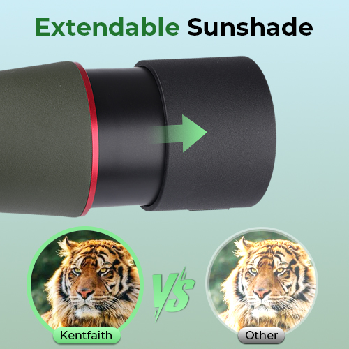 - * Bygget robust og vejrbestandig: Kentfaith kikkert med stativ er nitrogenfyldt, O-ring forseglet og fuldt gummeret for vandtæt, tågebeskyttet og stødabsorberende ydeevne. Klar til regn, støv og hård behandling – med en udskydelig solskærm og øjenbeskyttelse til ekstra beskyttelse.