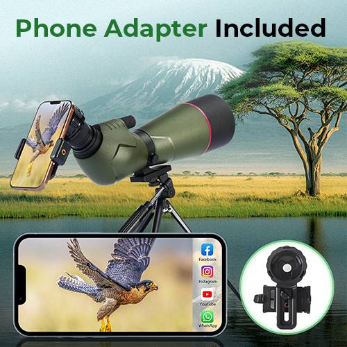 Den medfølgende smartphoneadapter gør det nemt at fastgøre din telefon til kikkerskoptet til fugletitsyn, hvilket omdanner den til et kraftfuldt teleobjektiv. Tag detaljerede billeder og videoer af fugle, optag sjældne øjeblikke, og del dine observationer med det samme—ingen ekstra tilbehør nødvendigt.