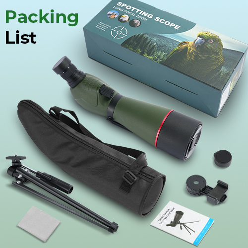 20-60x80 Kikkert med Stativ & Telefonadapter, FMC-linse med BAK4-prisme, til Fuglekigning, Jagt, Målskydning, Vildtobservation, Kentfaith