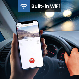 - * Den indbyggede 2,4 GHz Wi-Fi-funktion giver mulighed for at se videoer på din smartphone ved hjælp af kameraappen i bilen til enhver tid. Du kan downloade optagede videoer direkte til din smartphone, se videoer, se live visninger, dele videoer til Facebook, YouTube, Twitter, LinkedIn. Den indbyggede GPS af Car Dual Dash kamera giver real-time hastighed (KM / H eller MP / H) og placering markører for hver video, hvilket gør det nemt og bekvemt for dig at bruge det!