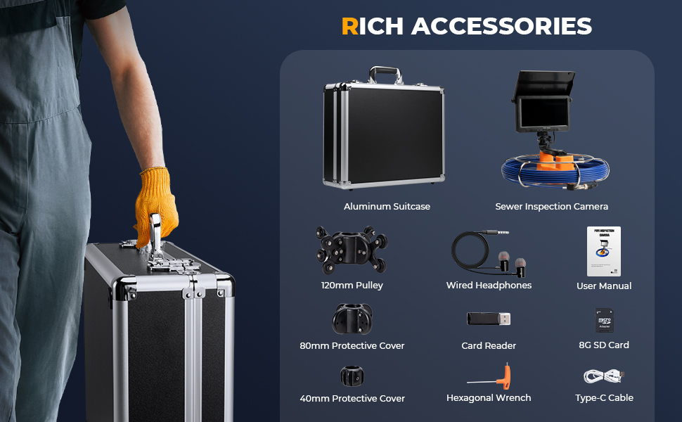 - Hvis du allerede har VVS ekspertise, vil du sætte pris på kvaliteten og ydeevnen af vores produkt. Ikke professionel? Bare rolig! Med KentFaith kloakinspektionskamera har du det ultimative værktøj til at spare penge ved at undgå behovet for at ringe til en professionel blikkenslager.