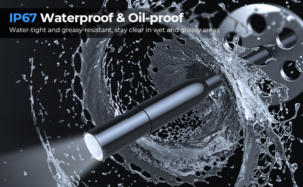 - * Vores lille inspektionskamera har et semi-regid slangekabel, som er fleksibelt nok, mens den holder sin form bedre kontrol, hvilket gør det ubesværet at gå gennem S- og L-formede bøjninger. Desuden er dets holdbare kabel IP67 vandtæt, ideel til våde forhold som afløb, toiletter, gastanke og meget mere.