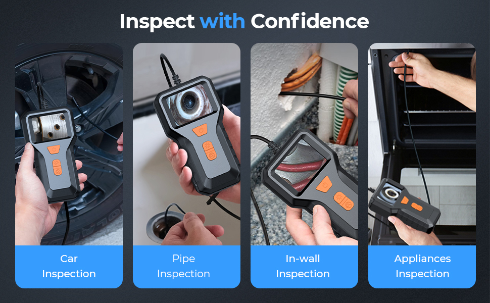 - Vores lille inspektionskamera er nemt at bruge, bare tænde, og det er klar til brug, og det er et fremragende værktøj til bilindustrien, VVS og elektriske, og dem, der foretager deres hjemmeinspektion og forbedring.