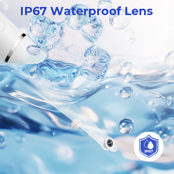 - * 【Ingen flere vandbekymringer! 】 Stænk eller skylning? Intet problem! Vores mundkamera kan prale af en IP67 vandtæt linse, så du kan udforske din mund bekymret. Skyl den under vand for en hurtig rengøring, så den holdes frisk og klar til næste brug. Bare en venlig påmindelse - kroppen er ikke vandtæt, så hold den tør!