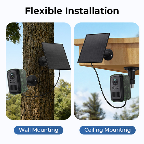 Vores trådløse solcamera kommer med et 4W solpanel og en indbygget 5200mAh genopladelig batteri for at give uafbrudt strøm, hvilket eliminerer behovet for at tage kameraet ned fra væggen for at oplade det. Desuden kan du bruge den 10ft/3m forlængerledning til at finde det perfekte solrige sted og eliminere strømmangel for altid.