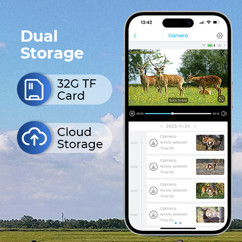 Kentfaith 4G solarsikkerhedskamera understøtter en maksimal lokal lagring på op til 128 GB (en gratis 32GB-lagerkort er inkluderet). En pålidelig og sikker cloud-lagring er også tilgængelig.