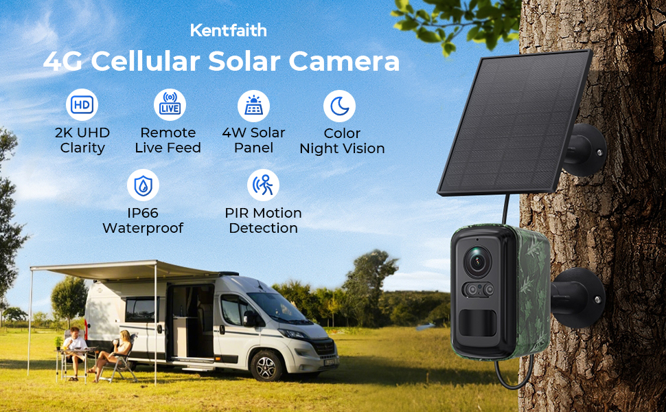 Kentfaith solarcamera til udendørs brug er dit øje i naturen og forbinder direkte til 4G-netværket for liveadgang fra din telefon, uanset hvor fjernt det er. Hold øje med dit landsted, overvåg en byggeplads eller følg din ranch i realtids HD-video og lyd. Desuden kan du dele adgang med familie eller kolleger for at gennemgå optagelser sammen fra hvor som helst i verden.