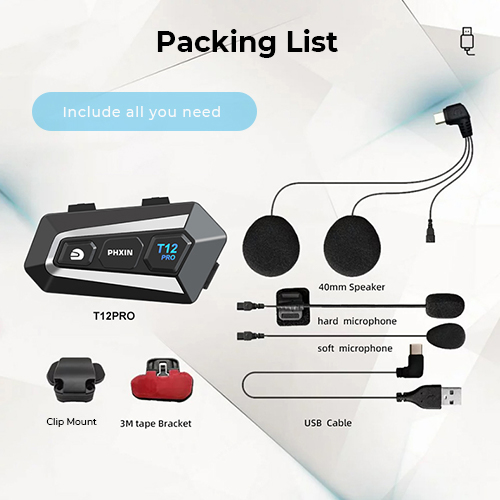 Motorcykel Bluetooth intercom har en IP67 vandtæt klassificering, der forhindrer indtrængen af regnvand under tur. Dette sikrer pålidelig ydeevne i alle vejrforhold, uanset om det er regn eller sne, så du kan køre trygt, uanset vejrforholdene!