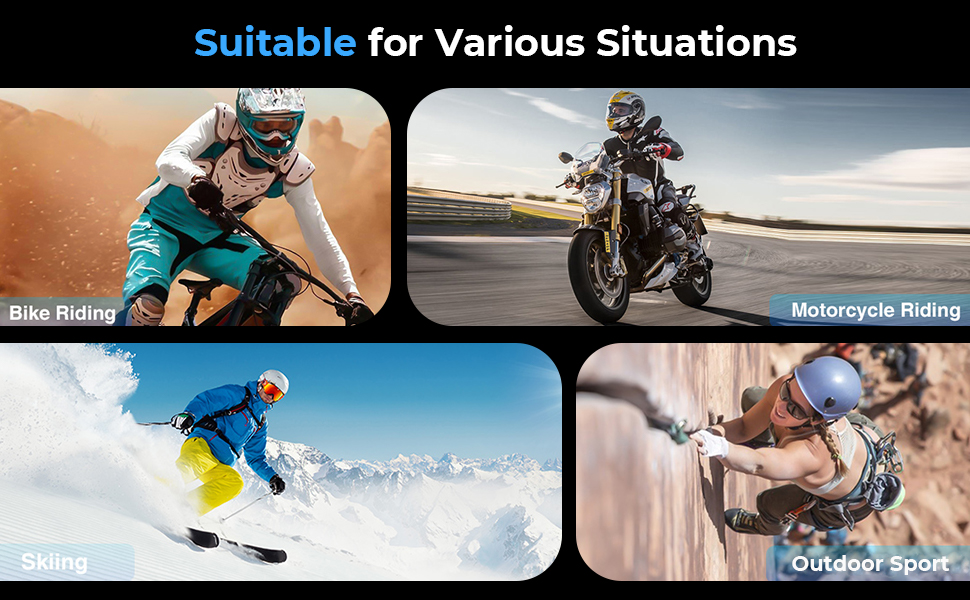 - * 【Musikdeling & FM Fun】Del din musik og ride den samme vibe som din kollega (kun mellem 2 ryttere)! Med musikdeling kan både du og dine kolleger groove til det samme spor. Plus, vores motorcykel hjelm højttalere er udstyret med indbygget FM-radio, så du kan holde dig informeret om lokale nyheder, vejrforhold og trafik, ingen telefonkræves.
