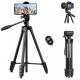 59,4''/1,5 m aluminium rejsetripod med Bluetooth-fjernbetjening og justerbar højde (17-60 tommer) – Letvægts (0,61 kg), 360° panorama, kompakt foldning (42 cm) – Ideel til B174A1 rejse og udendørs brug
