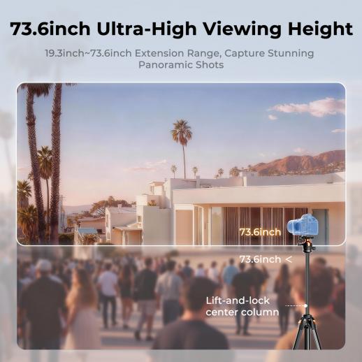 - * 【UDVIDELSESBAR HØJDE】K&F CONCEPT A305A3+BH-40 kompaktkamerastativ med justerbar centerdrejevinkel giver højdejustering fra 19 tommer til 73 tommer til forskellige højdeapplikationer.