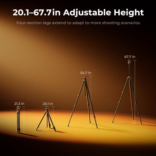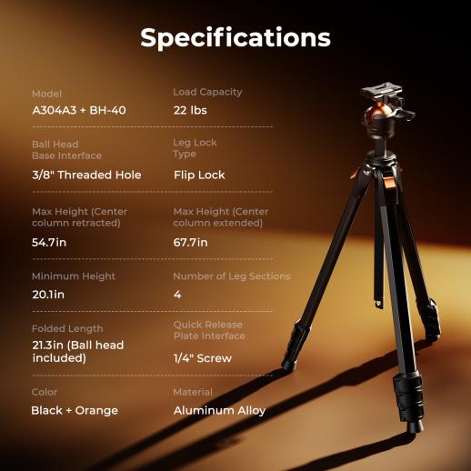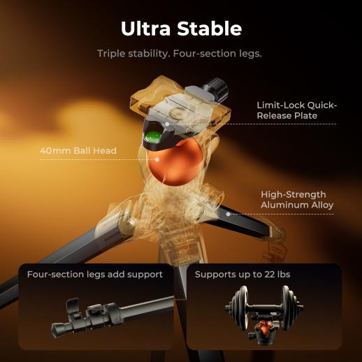 - * 【Stabilitet og lasteevne】Gimbalen har en kuglediameter på 40 mm og kan bære en belastning på 10 kg. Benene er lavet af aluminiumslegering af høj kvalitet.