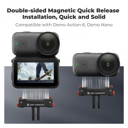 - * [Bred udvidelse]: Dette magnetiske quick release-monteringssæt til DJI Osmo Action 6/Osmo Nano inkluderer 2 magnetiske monteringer, 1x 1/4" adaptermontering, 1x quick release-spænde, så du hurtigt kan skifte dit kamera fra forskellige actionkamera-tilbehør såsom brystmontering, hovedremmontering, selfie-sticks, magisk arm og mere.