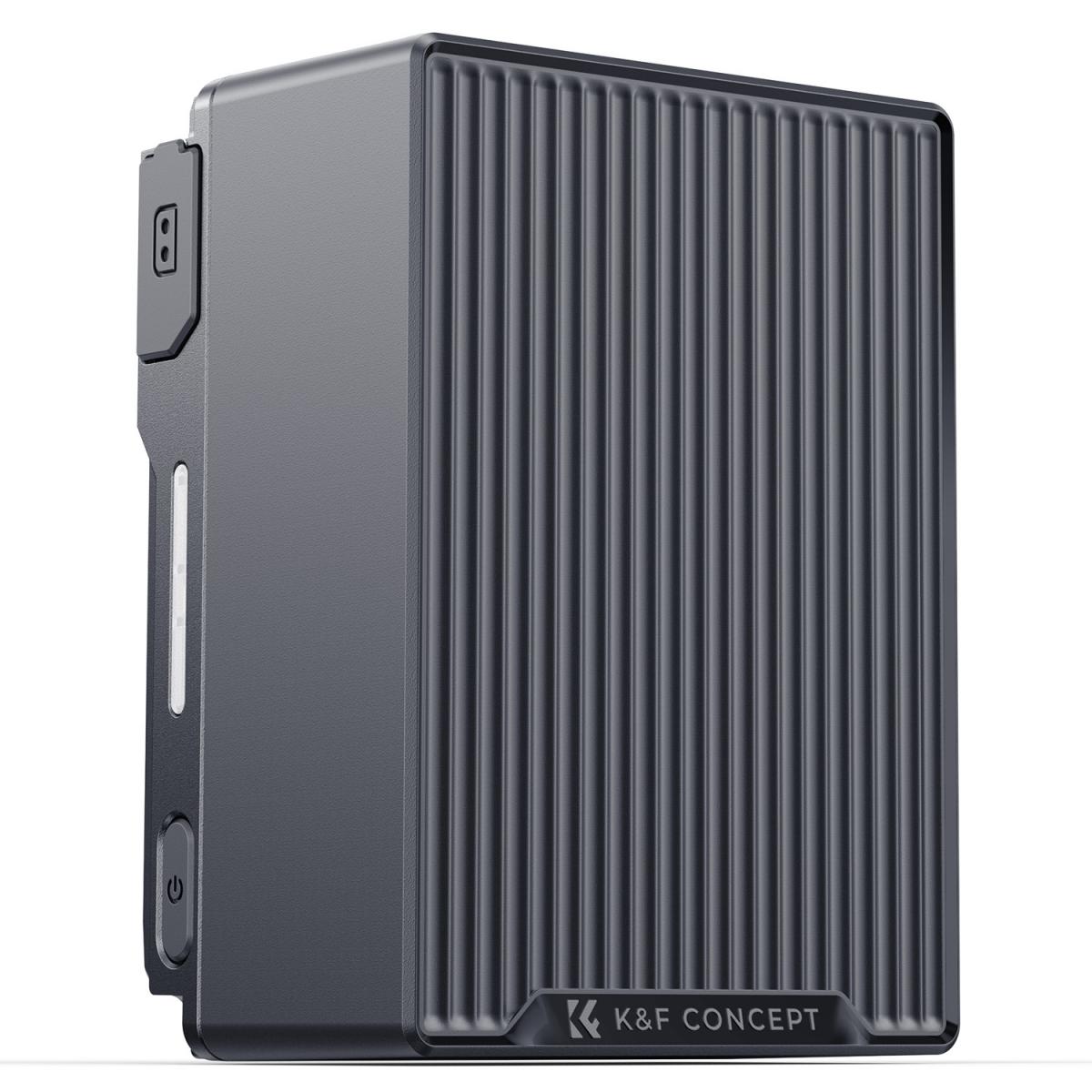 Jeg har personligt købt to af K&F Concept V Mount-batterierne med skærme, og jeg er virkelig glad for dem til prisen. Denne fås med rabat i forhold til den model, fordi den mangler skærm og én USB C-port mindre. Den har stadig PD100w hurtigopladning, USB C- og A-port, to D-tap, DC 12V, tænd/sluk-knap og statuslysbjælke. Den har endda et godt sæt BMS-batteristyrings- og beskyttelsesfunktioner. Det er et godt basisbatteri, der gør, hvad du har brug for. Dette vil være perfekt til mit lygtekit med sin flade sorte farve. Kanterne i kabinettet er af plastik og ikke aluminium, så de er ikke der for at fjerne varme.
