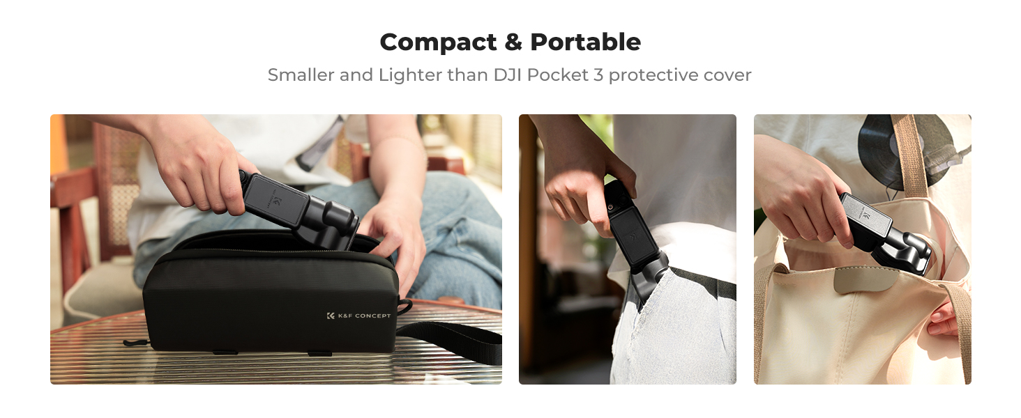 - * 【Nem at opbevare】 Den kan opbevares sikkert og bekvemt i en rygsæk eller kuffert. Beskyt altid din Pocket 3, når du opbevarer eller rejser.