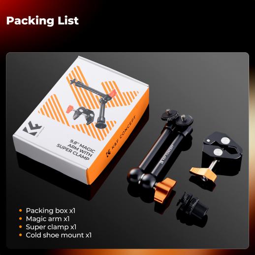 - * [MULTIFUNKTIONEL KOMBINATION] - K&F Concept 9,8-tommer magisk armklemme kan bruges med en række forskellige kameratilbehør. Uanset om du optager fra høje eller lave vinkler, opfylder den forskellige kreative behov og udforsker forskellige optagevinkler.