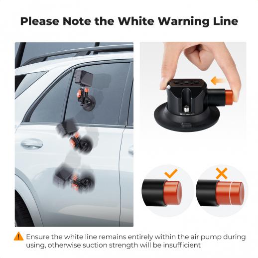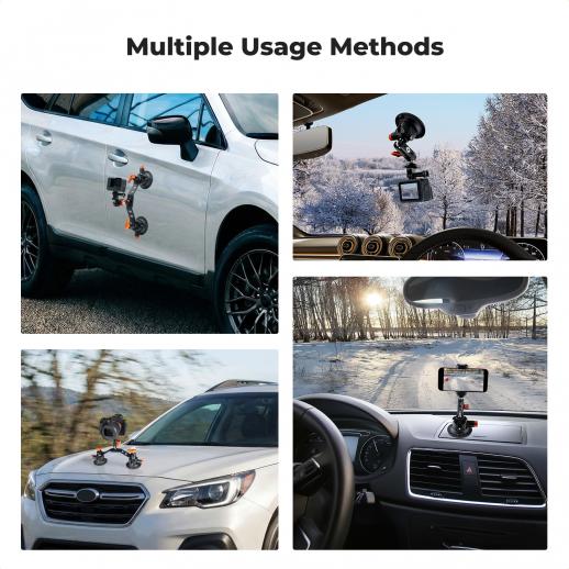 - * 【Designet til biloptagelser】 - Har to kraftige sugekopper på 7,5 cm, der sikkert fastgøres til glatte overflader som bilruder, motorhjelme, sidepaneler, glas og fliser. Den understøtter op til 20 kg vandret og 15 kg lodret. Ved optagelser i bilen skal du sørge for, at dit udstyr vejer mindre end 2 kg for at garantere sikkerheden.