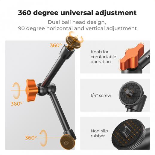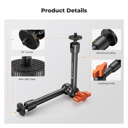 - * 【Multifunktionel kombination】 - K&F CONCEPT 9,8-tommer Magic Arm er kompatibel med en bred vifte af kameratilbehør. Uanset om du optager fra høje eller lave vinkler, opfylder den forskellige kreative krav og udforsker forskellige optageperspektiver.