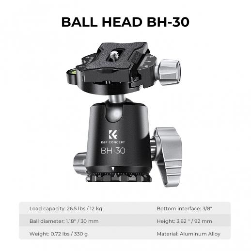 - * CNC-præcisions 30mm metal kuglehoved – Fremstillet med CNC-teknologi for høj præcision, slidstyrke og rustmodstand, hvilket sikrer lang levetid og smidig panorering under optagelser.