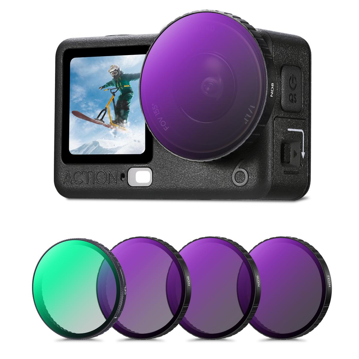 K&F CONCEPT Snap-On CPL ND Filter Kit Kompatibel med DJI Osmo Action 6, 4-pak CPL ND8 ND16 ND32 Neutral Density Polarizing Action 6 Filter Kameratilbehør, Multicoated HD Optisk Glas