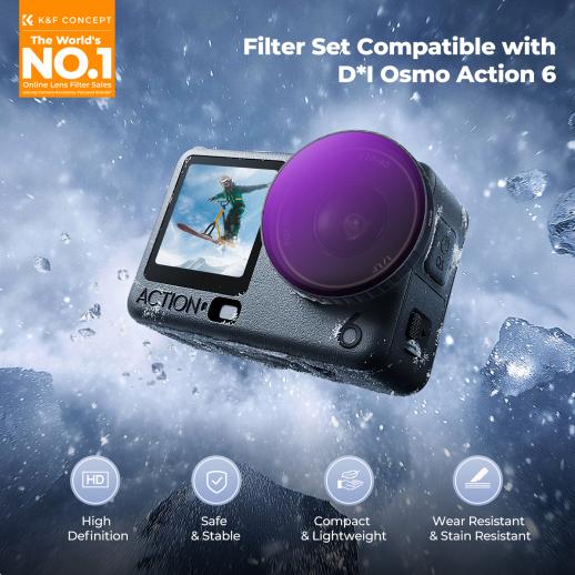 - * [Dedikeret til Osmo Action 6] Dette filtersæt fra K&F CONCEPT er kompatibelt med DJI Osmo Action 6. Det optimerer optageresultaterne gennem fysiske optiske justeringer, løser billedproblemer i komplekse lysmiljøer og beskytter også objektivet. Ideelt til POV-optagelser af surfing, rafting, cykling, vandreture, skiløb, paragliding, faldskærmsudspring, udforskning, natløb, rejsejournaling og daglig motion.