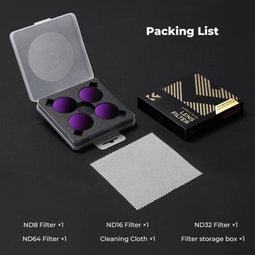 - * [Pakken indeholder]: 1x ND8-filter, 1x ND16-filter, 1x ND32-filter, 1x ND64-filter