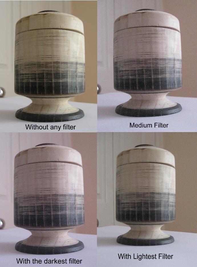 Reducerer mængden af lys, der kommer ind i objektivet, hvilket reducerer kameraets lukkertid. Nyttig til situationer, hvor der skal skabes bevægelsesudslæt (floder, vandfald, bevægelige personer) eller store åbninger skal bruges med flash for at undgå overeksponering.