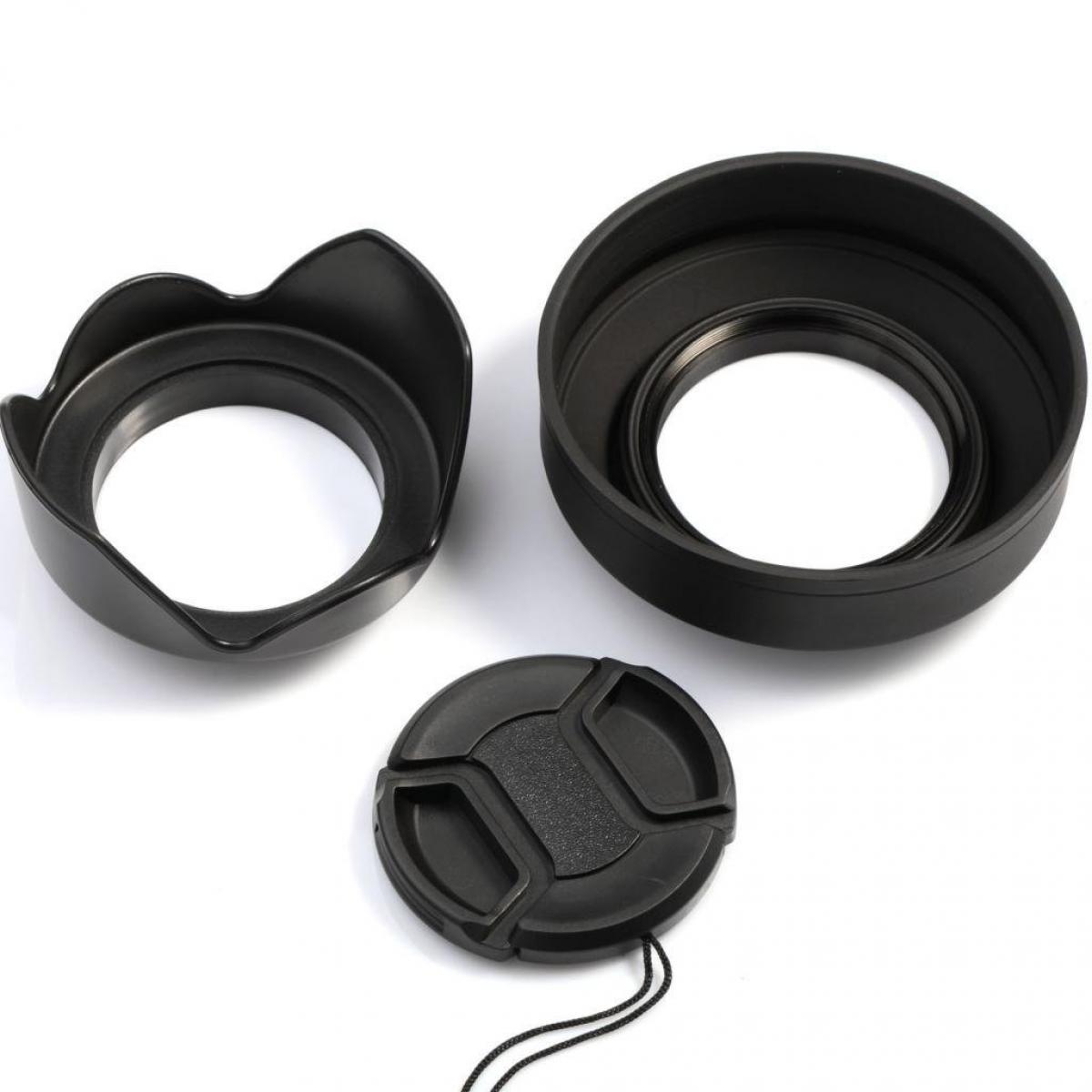 58mm Tulip Flower Lens Hood + Gummi Sammenfoldelig Lens Hood + Center Pinch Lens Cap