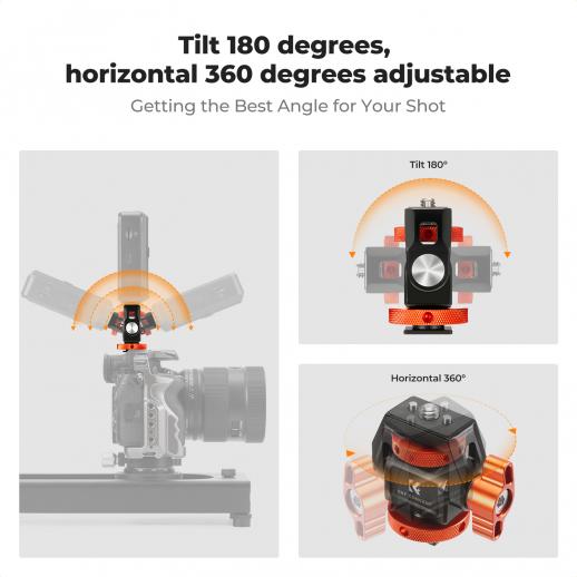 - * 1. 【Stabil bærende】 Lavet af aluminiumslegering, stærk og stabil, med en bæreevne på 3 kg. 1/4" skruen + teleskopisk positioneringsstift på toppen af beslaget forhindrer effektivt enheden i at afbøje, hvilket gør den stabil og sikker, når den er i brug.