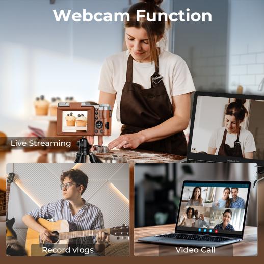 - * Det digitale kamera til begyndere er perfekt til at fange andre og tage selfies. Den 180° flip-up 2,8 tommer (7,1 cm) store skærm giver dig mulighed for at se, hvad der optages, hvilket gør indramning af billeder en brise. Dette fotokamera kan også fungere som et webkamera ved at forbinde til en pc med et USB-kabel. Egnet til live streaming, vlogging, videoopkald, online konferencer osv.