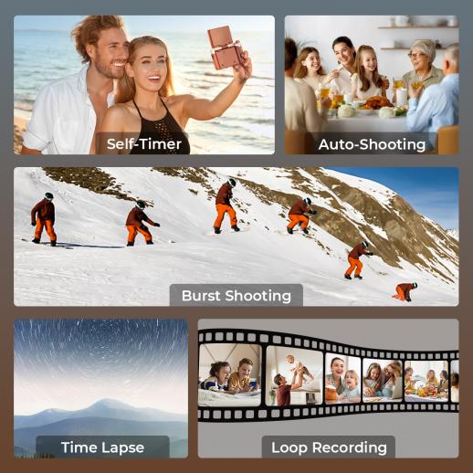 - * Flere fotograferingstilstande: Slå din kreativitet fri med kameraet til fotografering, som understøtter timelapse, burst-optagelse, automatisk optagelse og 10 filtre. Disse funktioner giver dig mulighed for at oprette unikke og fængslende videoer, der opfylder alle dine forskellige fotograferingsbehov.