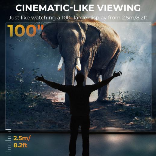- * Sæt dine øjne tæt på skærmen, og du vil føle, at du sidder i en biograf! Den indbyggede skærm giver en kæbefaldende oplevelse, svarende til at se en 100 tommers skærm fra kun 2,5 meter (8,2 fod) væk. Det er som at have din egen bærbare 3D-biograf under stjernerne.