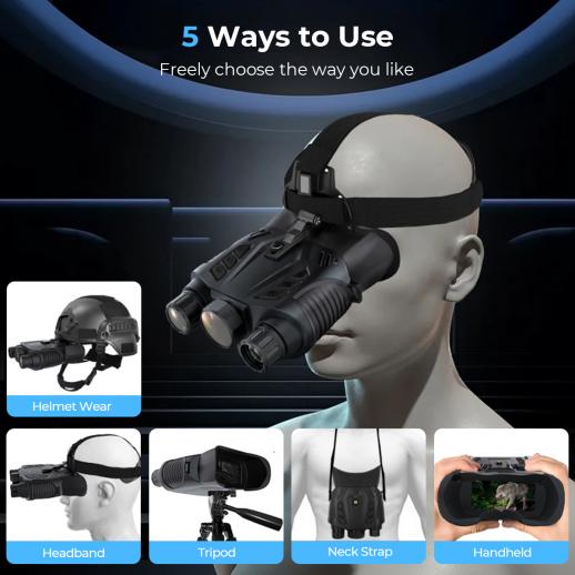 Vores ir nattesyn briller er kompakte og lette (Dimensioner: 14,5 x 19,5 x 5,8 cm/(5,7 x 7,7 x 2,3 tommer), Vægt: 558g(1,23 lb), hvilket gør dem nemme at holde med den ene hånd og fortsætte hvert eventyr, uden hånd smerter selv efter brug.