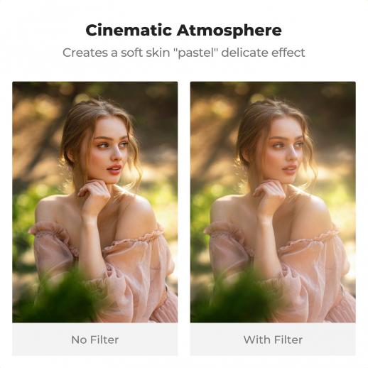 - * 【Variabel ND- og diffusionseffekt 2-i-1-filter】Et filter har både ND- og sort tågeeffektfilterfunktioner, som ikke kun kan opfylde behovene for lysreduktion, men også blødgøre højlysreflekser og reducere kontrast for at skabe en drømmende effekt til videoer eller fotos.