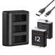 2 Batterier Genopladelige og Chargeur Portable 3 Slots til GoPro Hero 12, Hero 11, Hero 10, Hero 9.