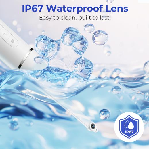 - * 【Ingen flere vandbekymringer! 】 Stænk eller skylning? Intet problem! Vores mundkamera kan prale af en IP67 vandtæt linse, så du kan udforske din mund bekymret. Skyl den under vand for en hurtig rengøring, så den holdes frisk og klar til næste brug. Bare en venlig påmindelse - kroppen er ikke vandtæt, så hold den tør!