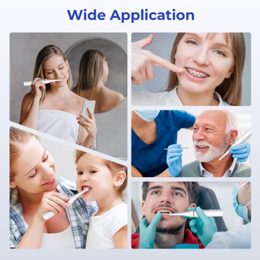 Det trådløse intraorale kamera er et vigtigt værktøj til tandpleje i hjemmet, perfekt til alle aldre – uanset om barn, voksen eller ældre, især dem med bøjle eller tandplejeproblemer. Det er også en nyttig anordning for kæledyrsejere til at inspicere deres pelsede ledsageres ører og mundsundhed. Den kan endda bruges til hud- og hovedbundskontrol, hvilket gør den til en alsidig alt-i-én sundhedsovervågning enhed til daglig brug.