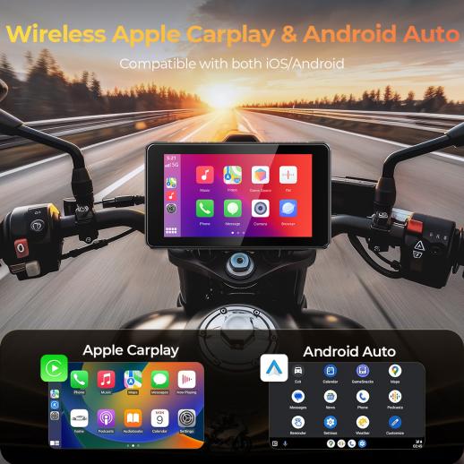 Vores CarPlay til motorcykel er perfekt til flere køretøjer! Ideel til motorcykler, trehjulede cykler, slæder, golfvogne, strandvogne og andre, det er den perfekte ledsager til enhver tur, sikrer at du holder forbindelsen og underholdt uanset hvor du går.