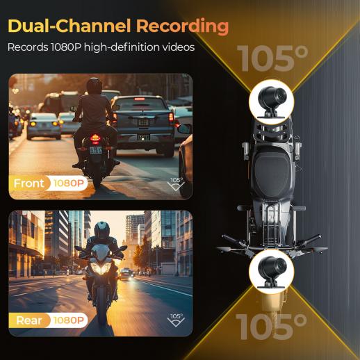 Motorcykel dash cam er udstyret med 2 kameraer, der optager både forreste og bageste optagelser. Du kan se optagelserne i realtid på skærmen, hvilket øger sikkerheden ved at hjælpe dig med at være opmærksom på dine omgivelser. Med en fantastisk 1080P opløsning fanges alle vigtige detaljer – vejskilte, nummerplader og meget mere – tydeligt.