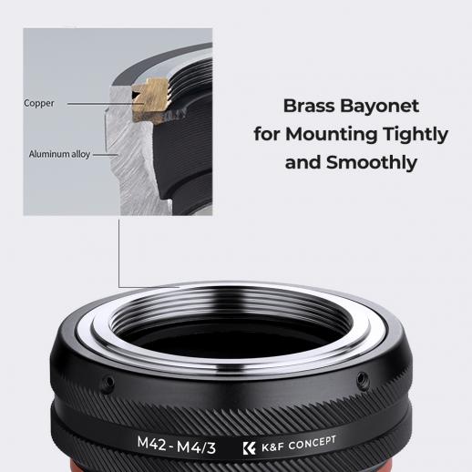 • Højtolerance præcisionshåndværk, med denne linseadapter kan dit objektiv og kamera kombineres tæt og jævnt med bajonetten, for at opnå formålet med justerbare og fokuserbare, bringe dine M42 skruemonteringsobjektiver tilbage til livet på M4/3 (MFT) kameraer.