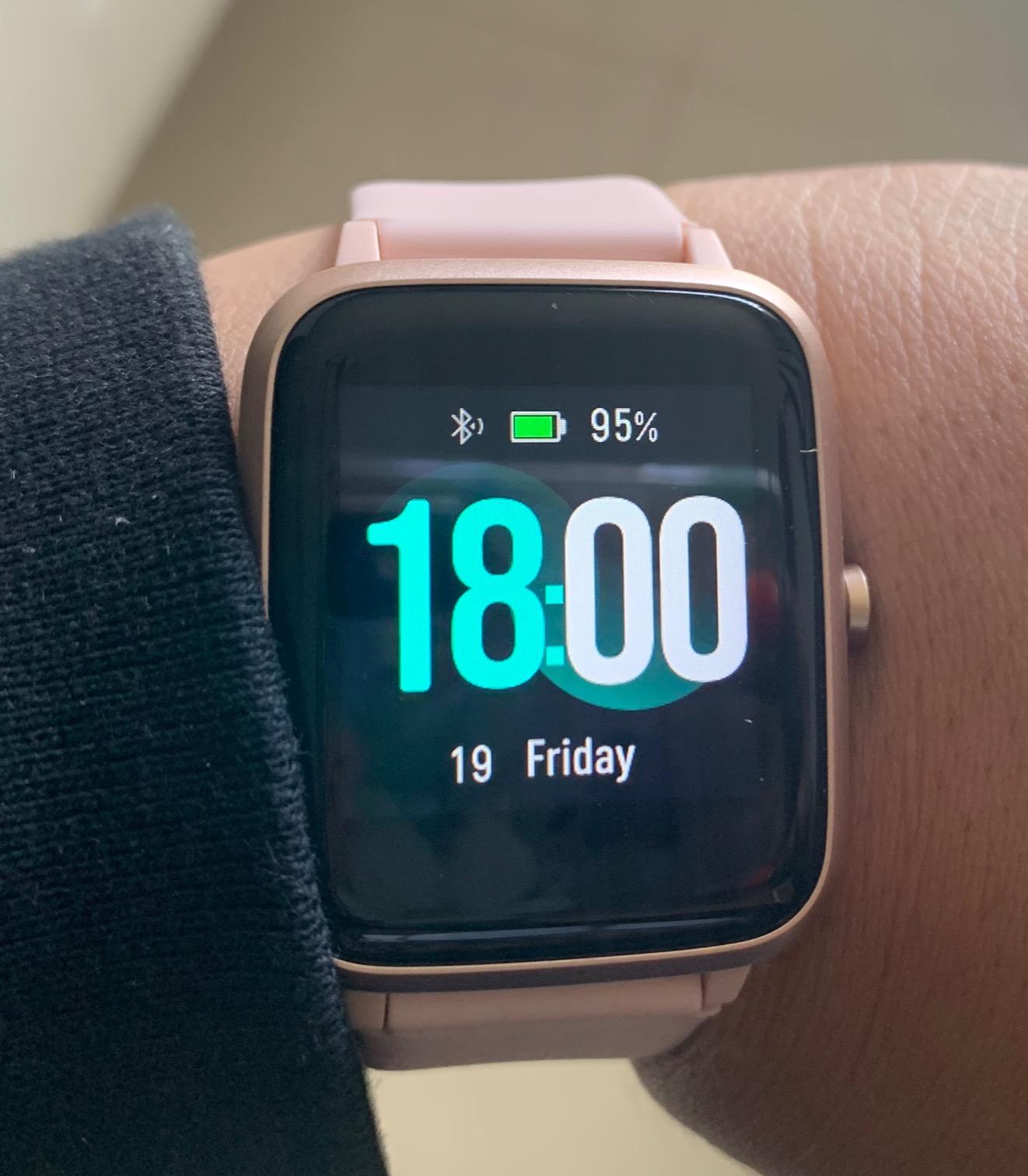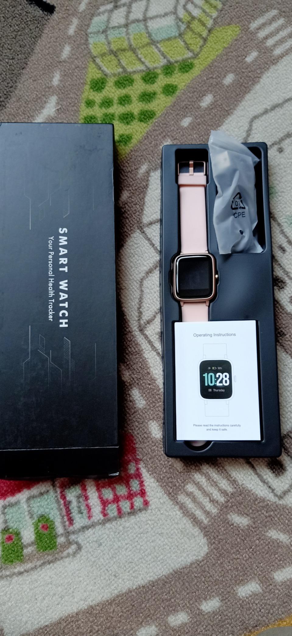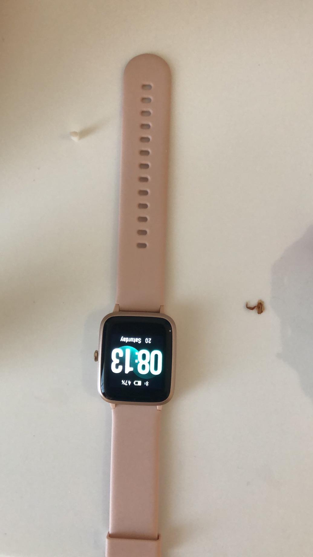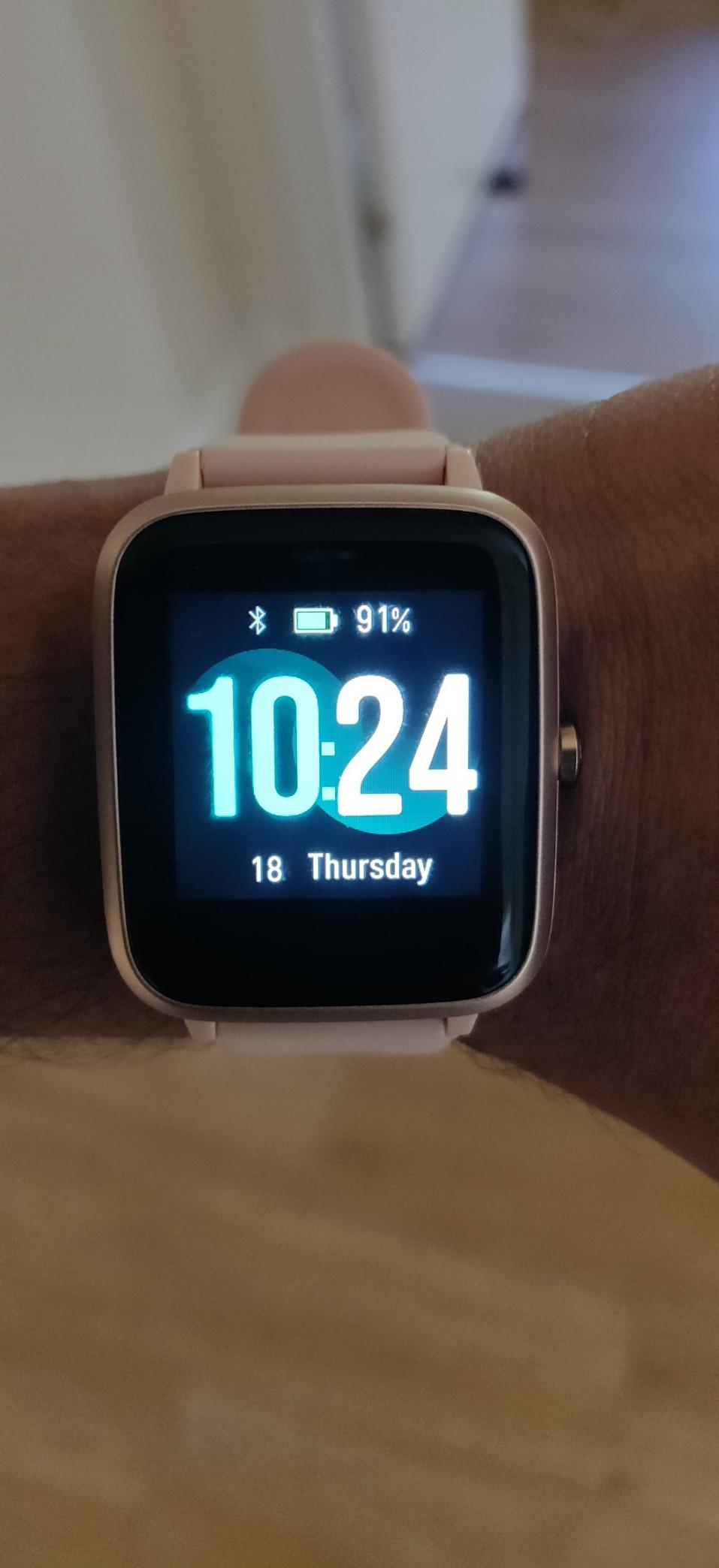 Hovedårsagen til, at jeg købte dette ur, var fordi jeg elsker udseendet af det, og jeg synes, det ligner et Apple Watch. Remmen har en dejlig lyserød farve og er behagelig at have på. Funktionsmæssigt er det også godt, der er en app til download, som du kan forbinde uret med for at se alle data. Det har en nyttig pulsfunktion såvel som mange andre bits. Jeg synes, det er stor værdi for de funktioner, det giver.