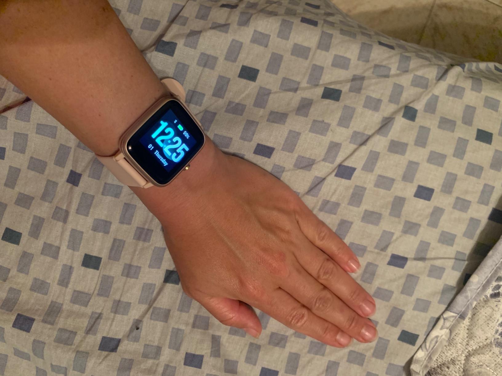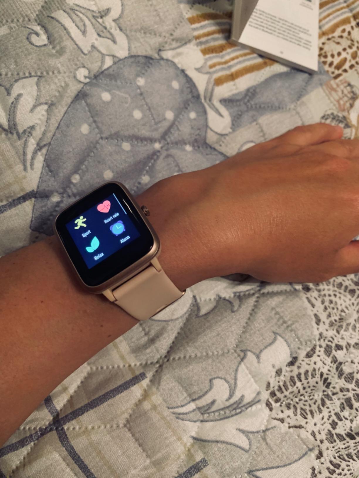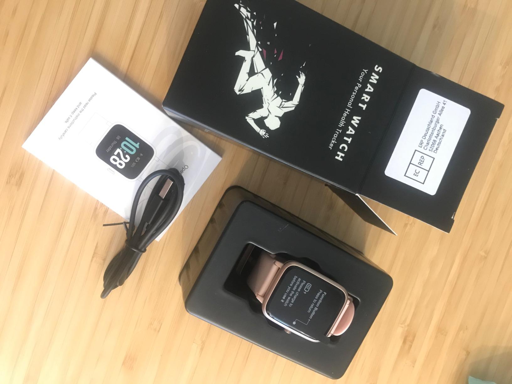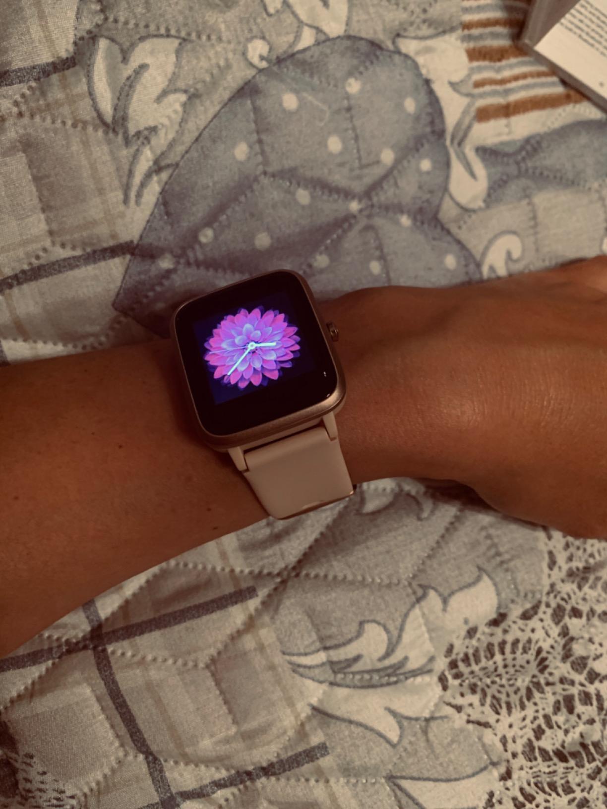 Hovedårsagen til, at jeg købte dette ur, var fordi jeg elsker udseendet af det, og jeg synes, det ligner et Apple Watch. Remmen har en dejlig lyserød farve og er behagelig at have på. Funktionsmæssigt er det også godt, der er en app til download, som du kan forbinde uret med for at se alle data. Det har en nyttig pulsfunktion såvel som mange andre bits. Jeg synes, det er stor værdi for de funktioner, det giver.