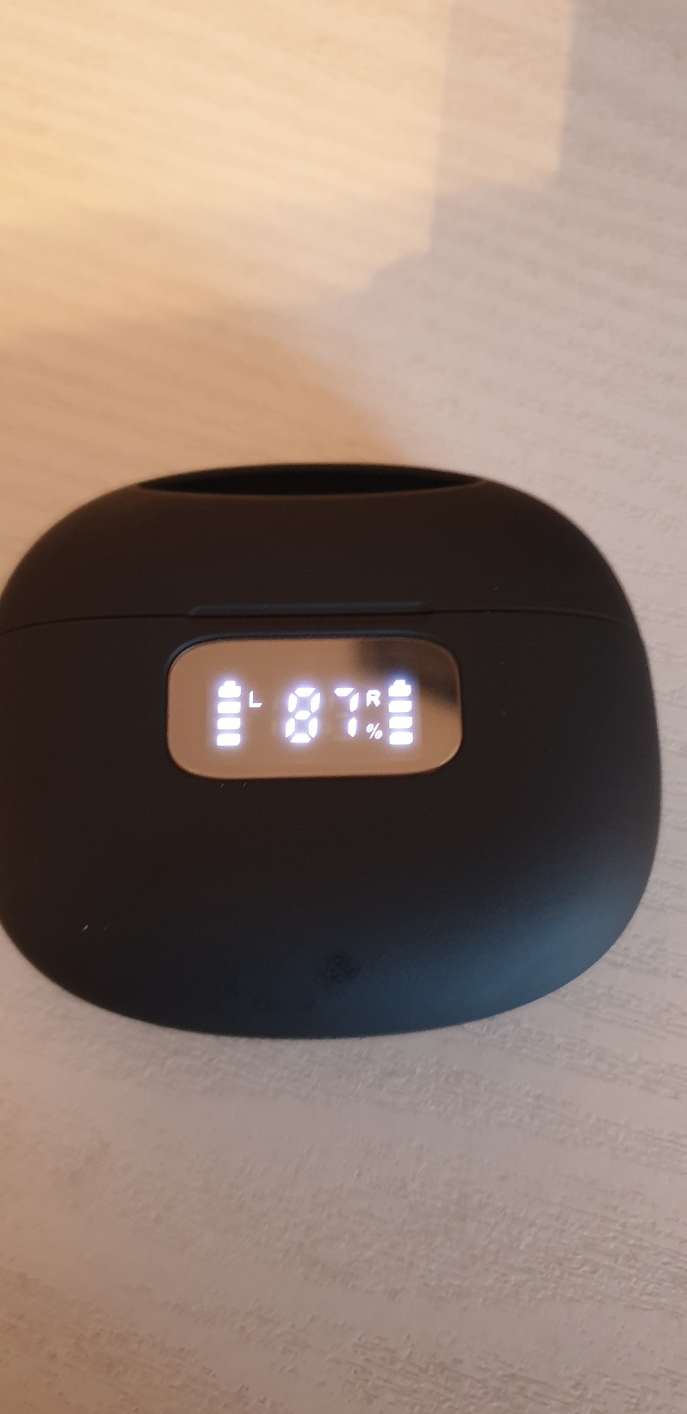 Jeg leder altid efter gode ørepropper med en sund pris, og det er netop det! Let , let at tilslutte med stor batterilevetid. Displayet viser batteriniveauet, og lyden er perfekt til at lytte til musik, mens du går. Jeg anbefaler at købe det, hvis du vil have kvaliteten uden at betale en høj pris!
