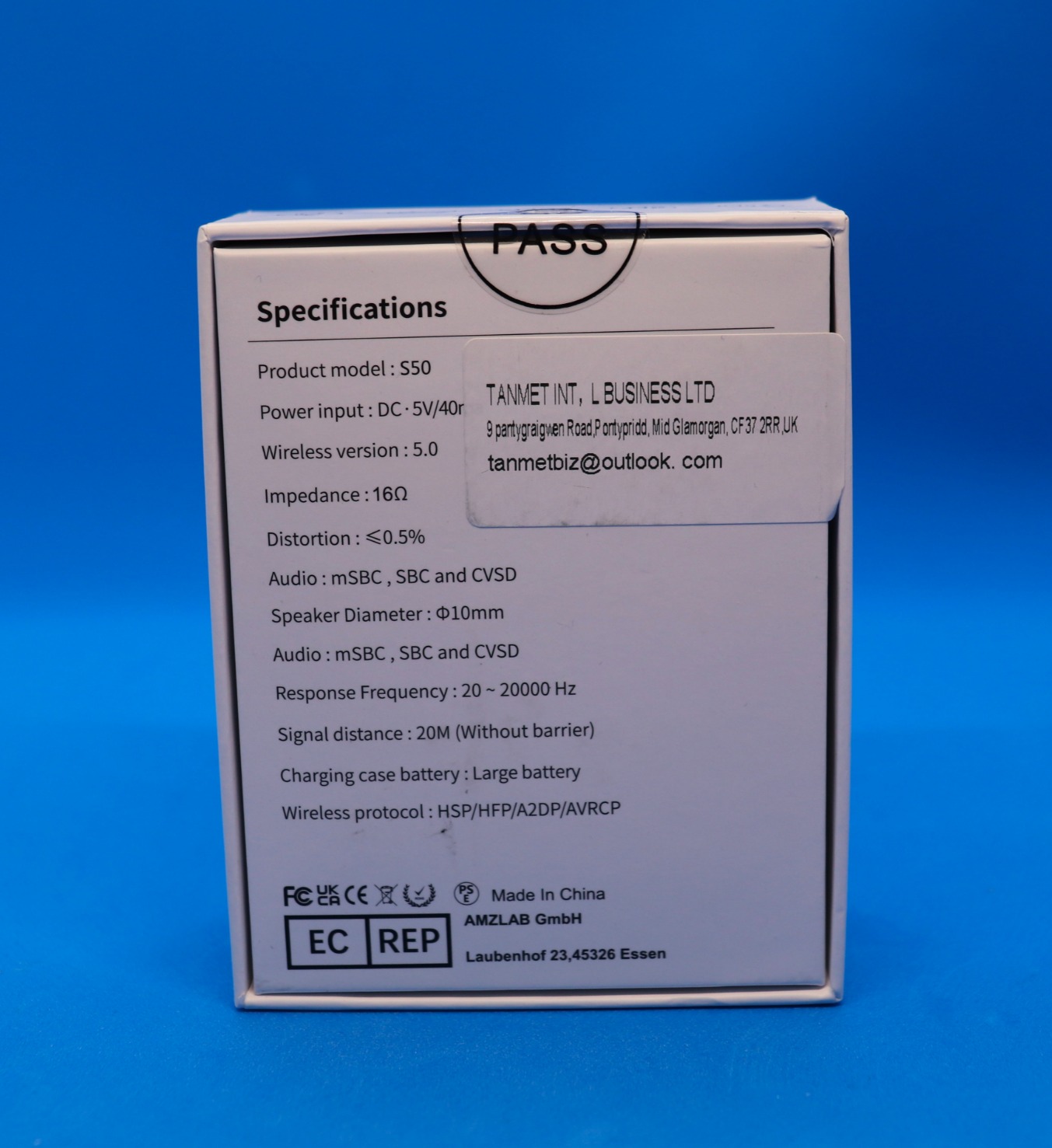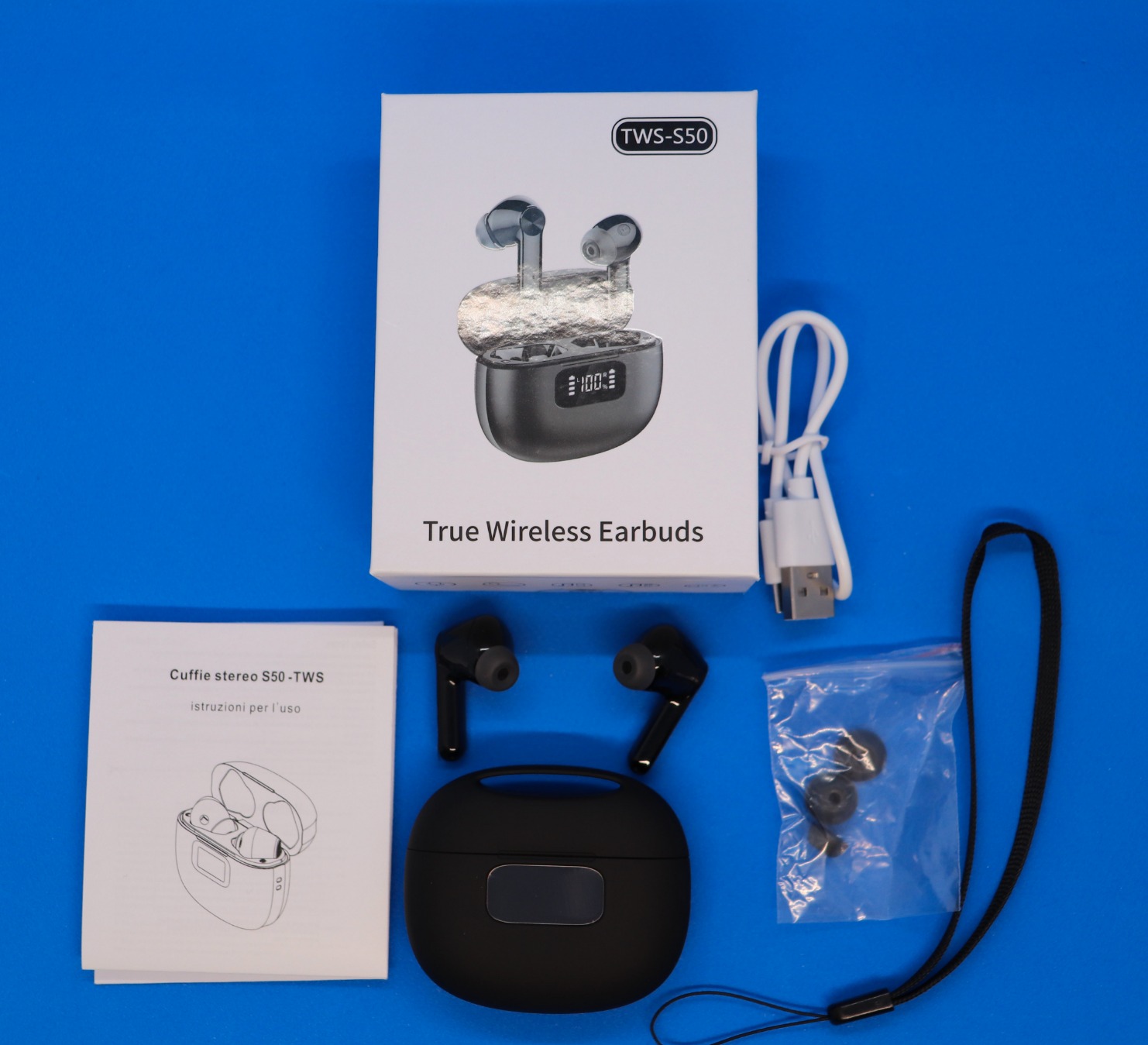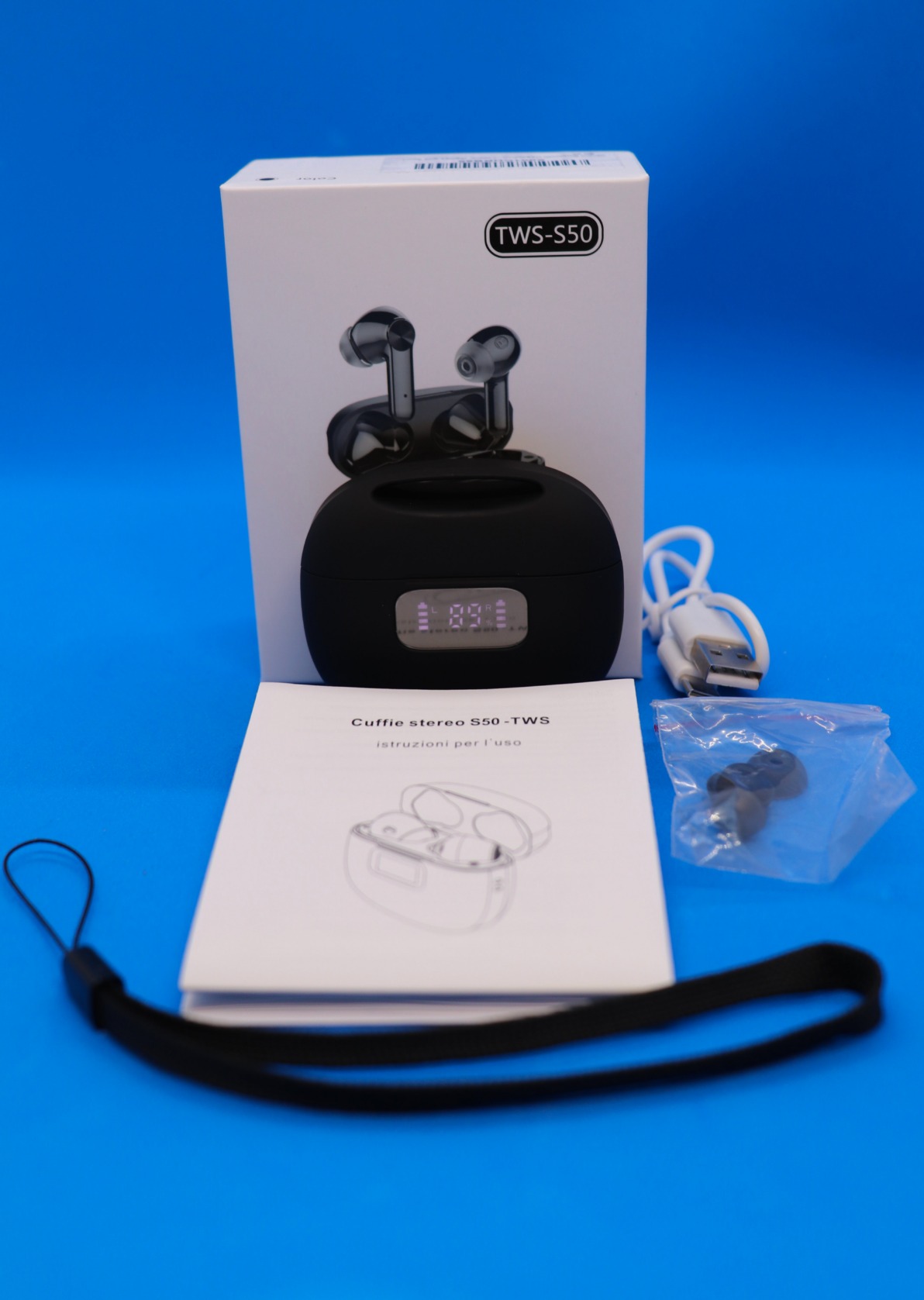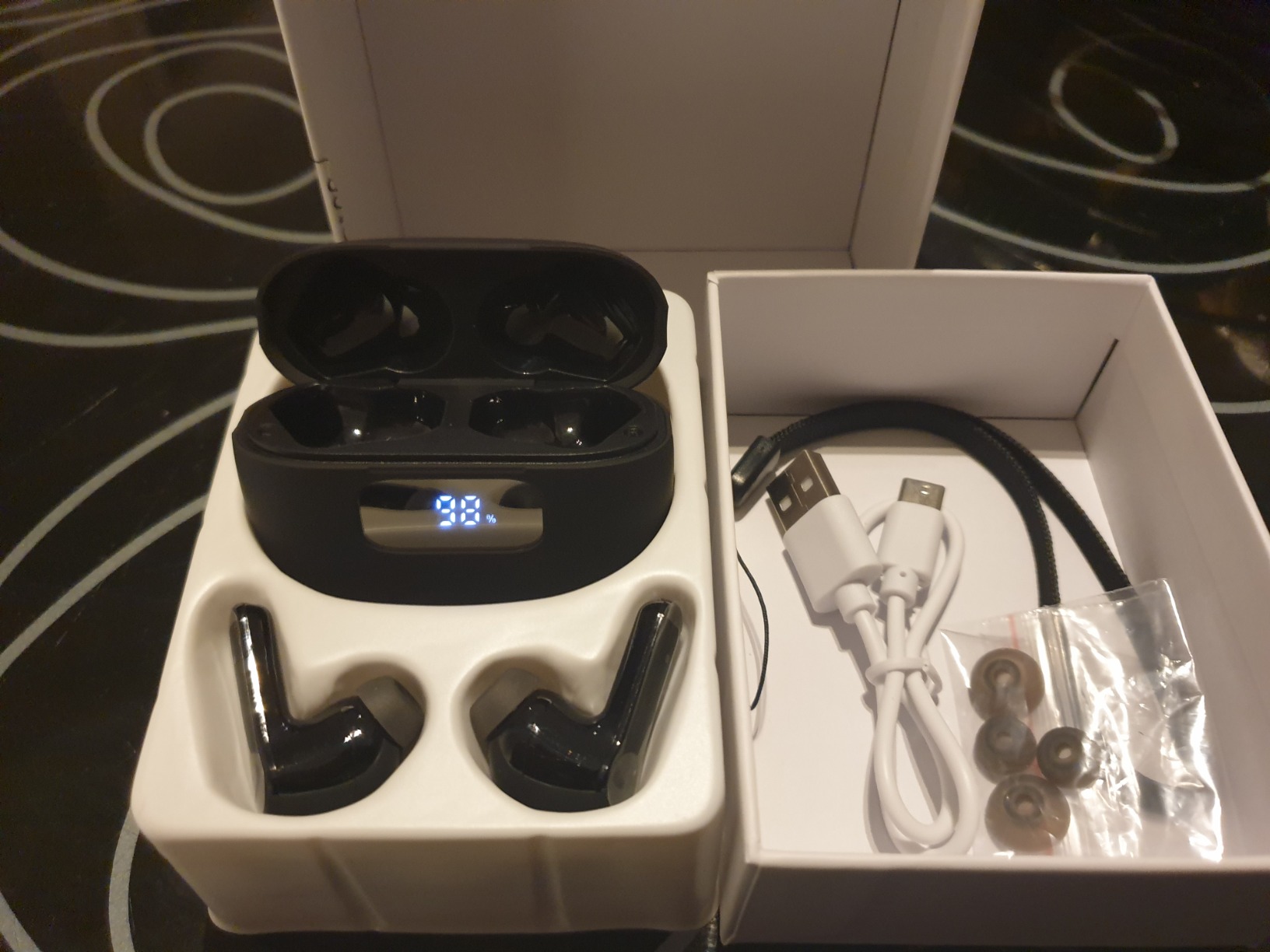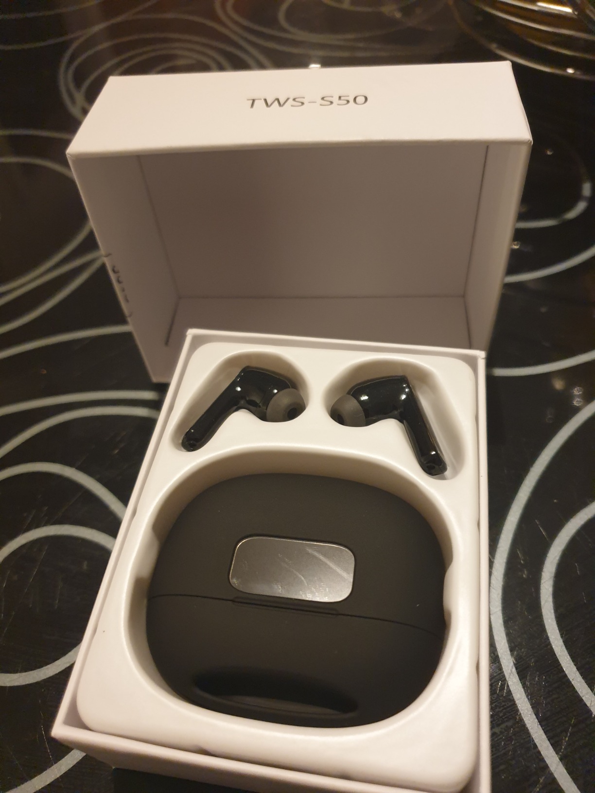 Ægte trådløse øretelefoner. Model TWS-S50Normalt hvis jeg lytter til noget, foretrækker jeg meget frem for øretelefoner for lydkvalitet og komfort. Troede jeg 'ville give disse en chance. Meget let at konfigurere og parre (Bluetooth 5.1) med min Android-mobil. Min mobil havde ingen problemer med at finde ørepropperne (S50). Jeg elsker øreproppernes design og kvalitet. Lyden er god til prispunktet, men hvad imponerede mig var komforten. I ørepropper fylder altid ubehageligt og falder ud for mig, men disse var på den anden side så behagelige, at jeg glemte, at jeg var i mine ører. Det ergonomiske design for mig personligt er strålende. Berøringskontrolfunktioner er intuitive og nemme at navigere, uanset om du afspiller musik eller besvarer et opkald. Ørepropperne oplades i et pænt etui med et letlæseligt LCD-display. For at oplade selve sagen gør du det via USB, kabel er inkluderet. Du kan forvente at få cirka seks timers kontinuerlig brug af ørepropperne, og etuiet giver fyrre timers opladningstid. Du får tre ørepropper i forskellige størrelser, der passer til dine behov. Signalafstanden til din enhed er ca. tyve meter. Ørepropperne er IPX7 vandtætte til, så ideel til når du er ude, især med det britiske vejr. Hvis du scanner QR-koden i kassen, får du også to års garanti.