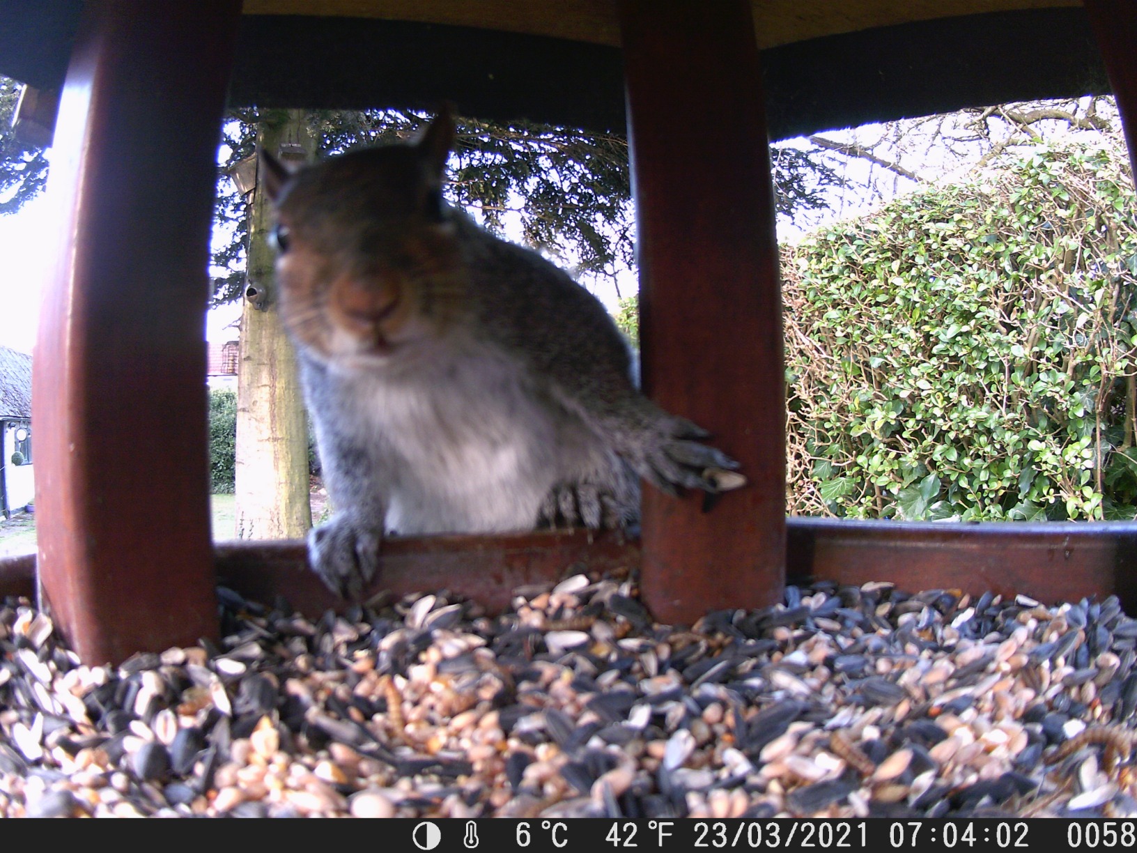 Har kameraet monteret på et nedløbsrør under tag i det åbne felt, registreres alt med et 125 GB kort, knivskarpe billeder med 7'ere. Video, fugl i flugt, hjorte på eng, også om natten (sort og hvid) i god kvalitet! Selv hvirvlende støv er registreret, siden da har jeg ikke haft flere skraldesyndere i min hal på marken!!! Kortet er fyldt om cirka 8 dage, så skifter jeg simpelthen kortet uden at fjerne kameraet, du kan også skifte batterier på den måde Selvfølgelig holder de meget længere!