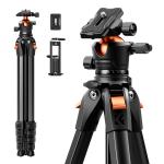 73" kompakt kamerastativ i aluminium, bærbart rejsestativ kompatibelt med iPhone, kapacitet på 22 lbs Arca Swiss kuglehoved til DSLR spejlløst kamera, laserniveau, jagt K&F CONCEPT